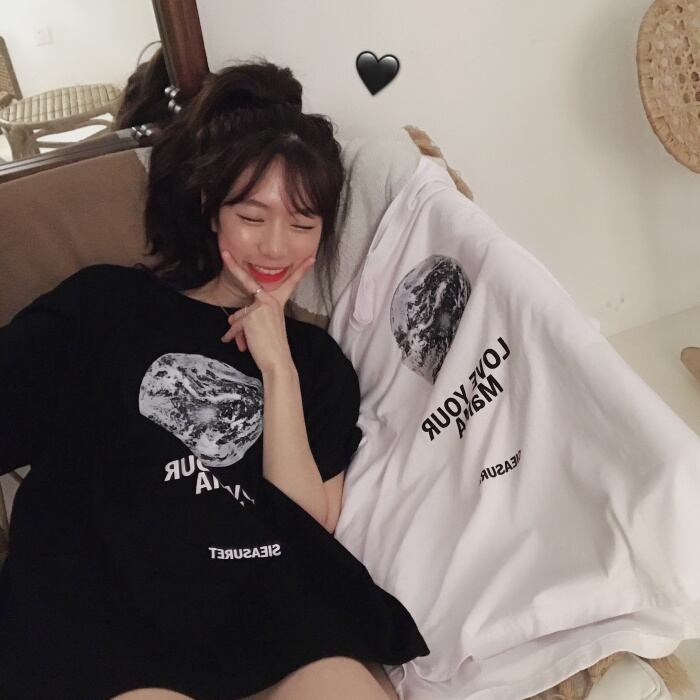 緩い半袖ラウンドネックプルオーバーtシャツの女性の夏のシンプルな地球の文字印刷ミドル丈Tシャツバージョンのボトムスは消えます kumikum47649888188