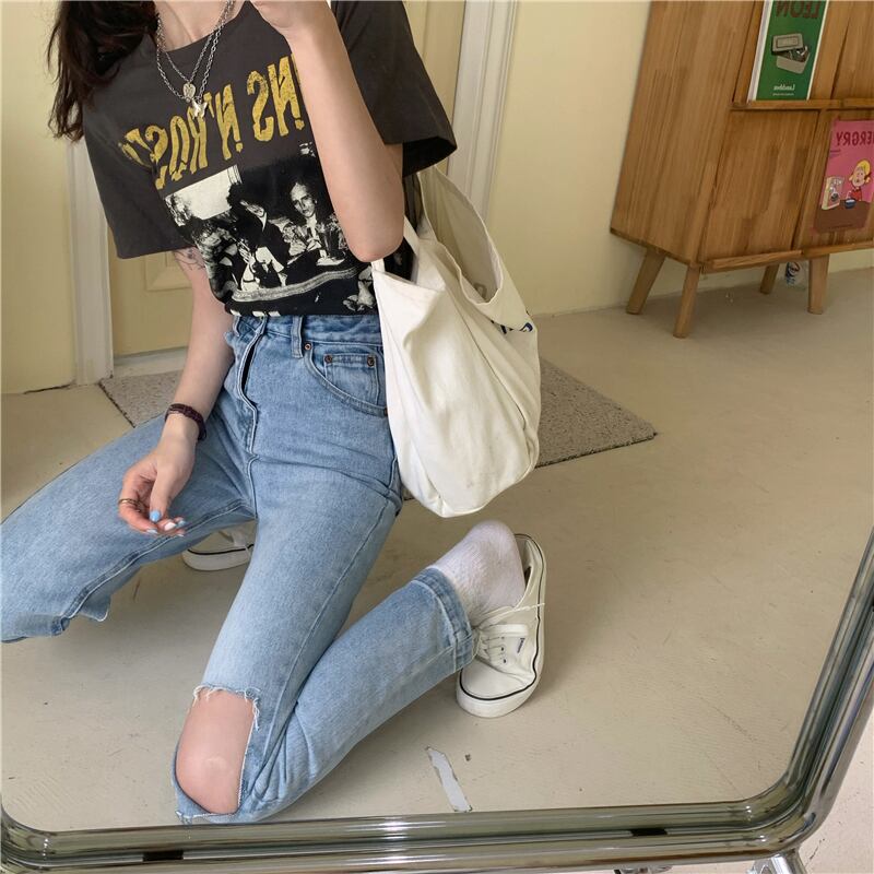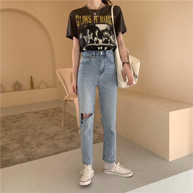 ストレートレッグパンツレディースネットレッドリップドハイウエストジーンズ秋ルーズカジュアルパンツは薄手のワイルドワイドレッグパンツパンツ kumikum53481806508