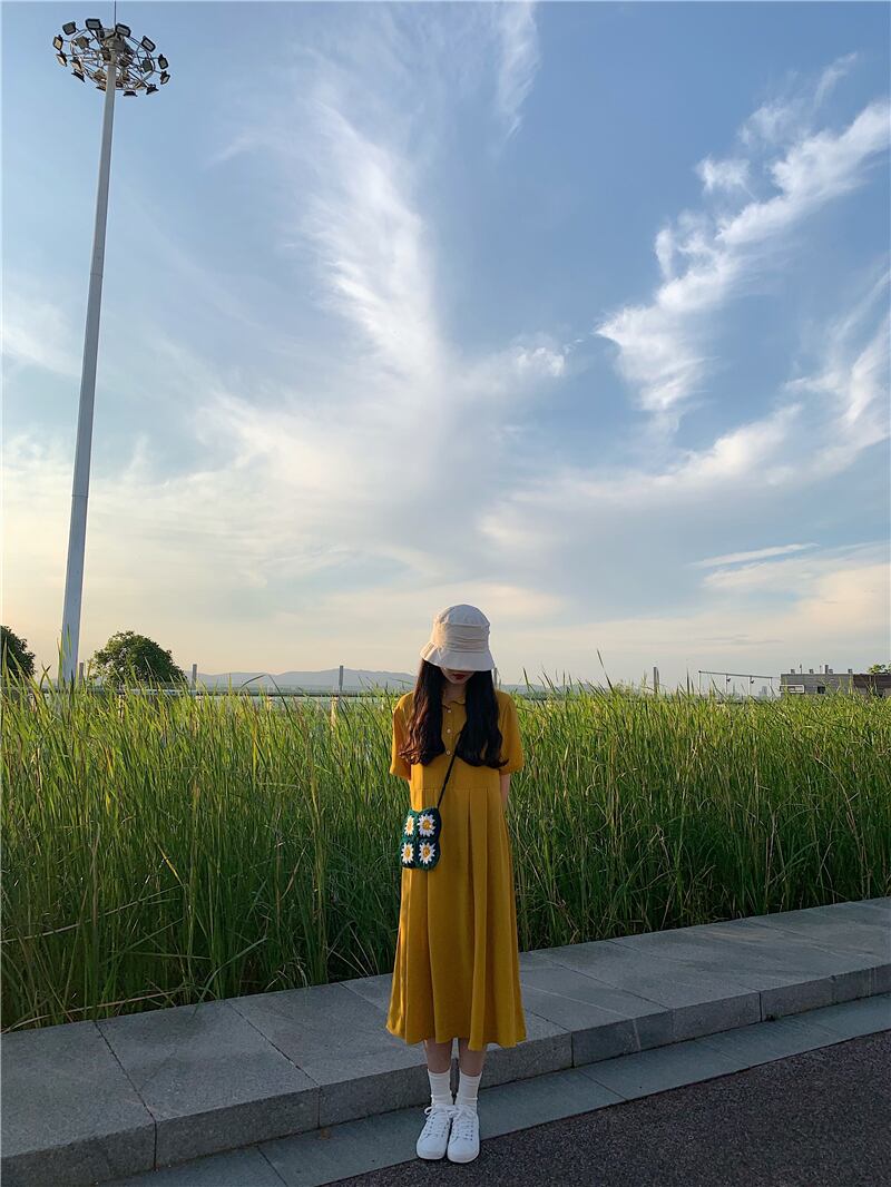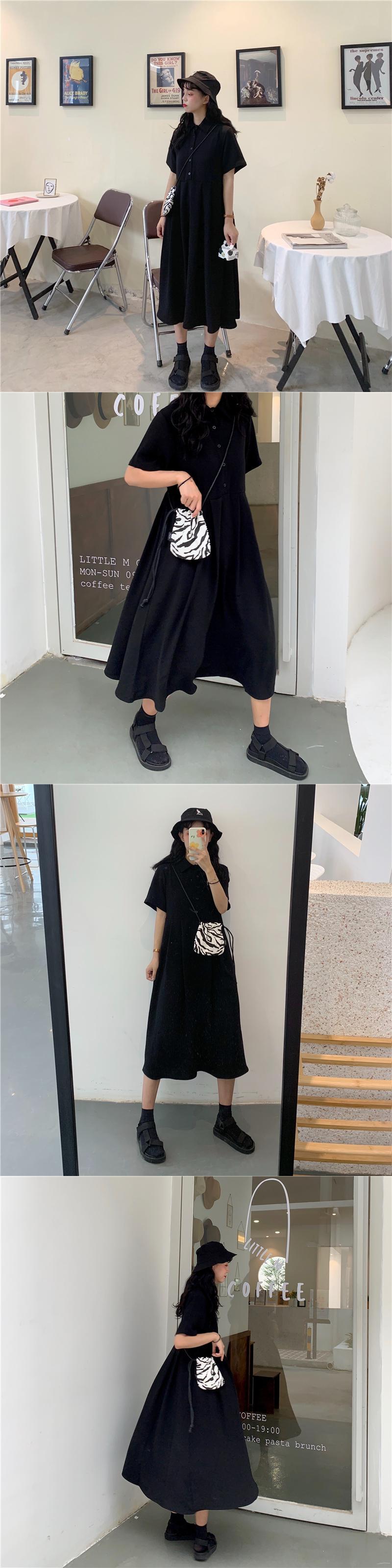 夏のルーズPOLOカラー気質ドレスのバージョン女性の友人は長い黒の半袖スカートのトレンドで薄く見えます kumikum74249225860