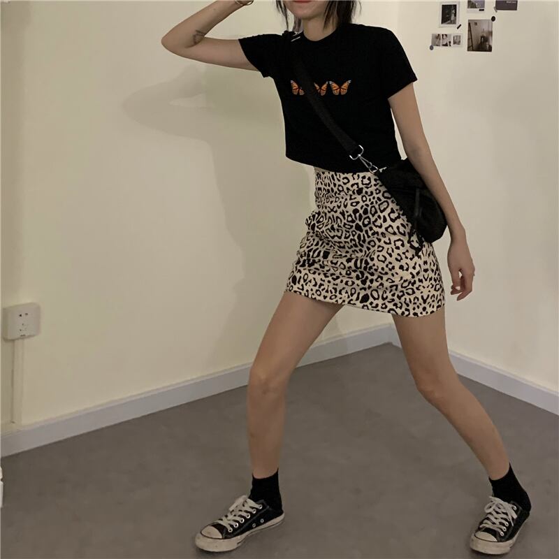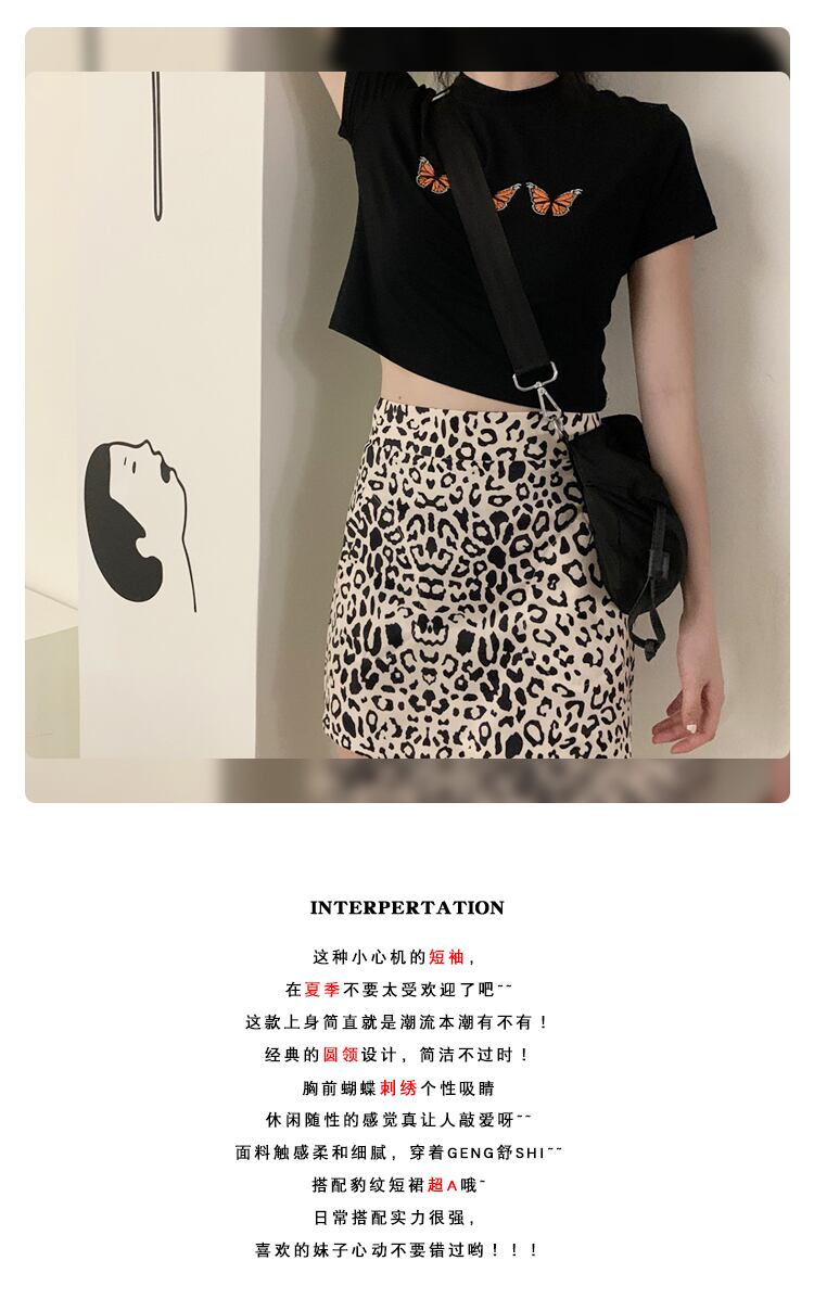 ネットレッドオーシャンバタフライ刺繡ショートTシャツボトミングシャツ女性夏バージョンのスリムブラックラウンドネック半袖トップス kumikum15883979702