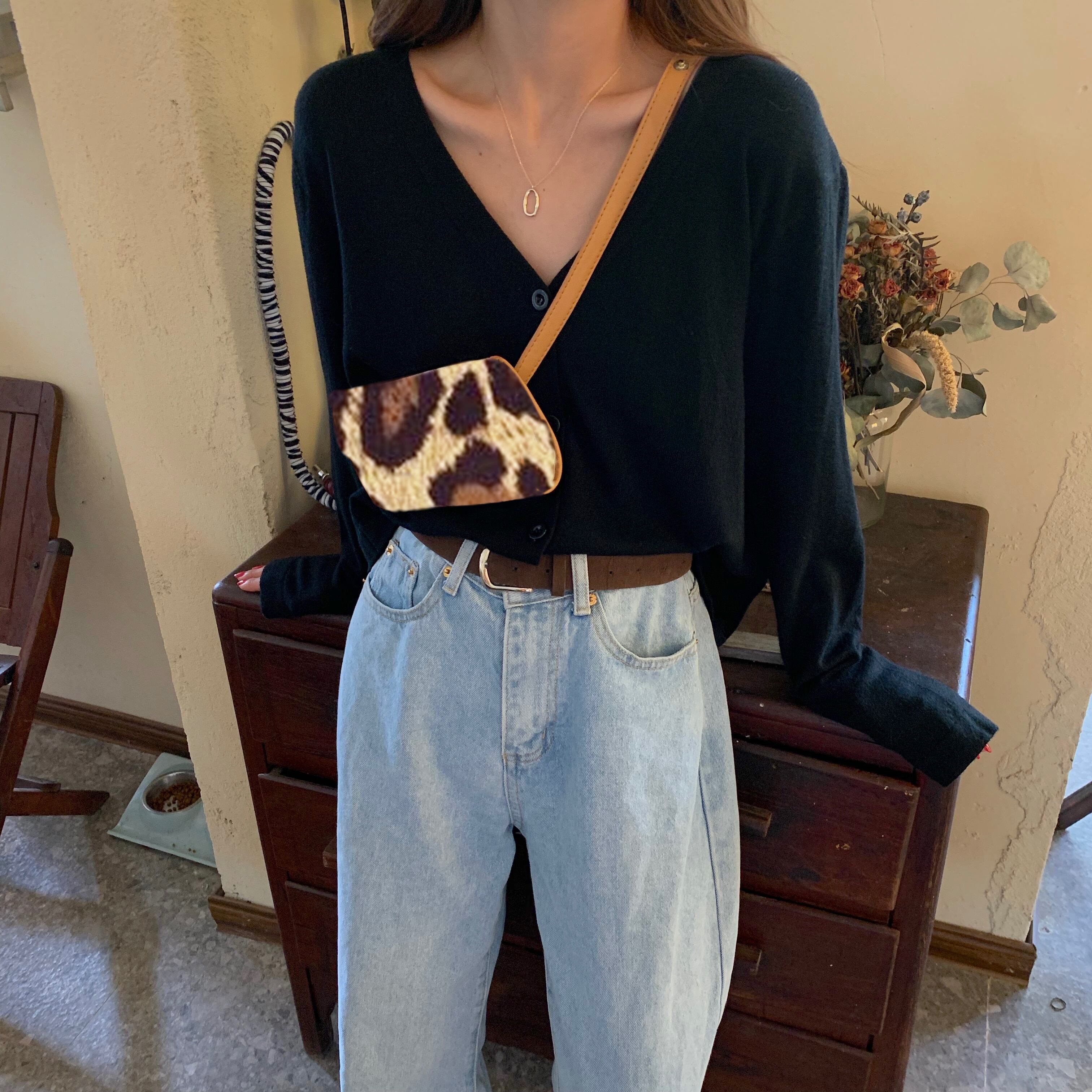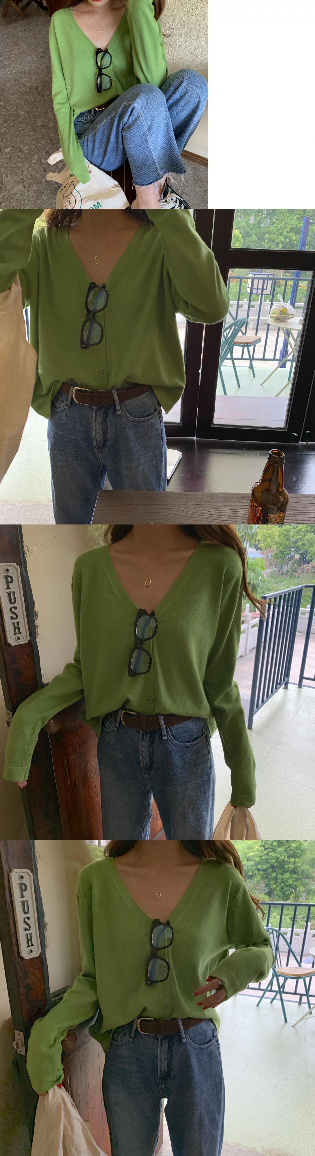 ソフトワックスレトロVネック長袖セーターカーディガンジャケット女性秋黒ショートルーズニットセータートップ kumikum11976674754