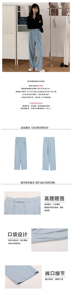 ドレープモップパンツ、女性の秋のルーズワイドレッグパンツ、オールマッチの薄い黒のストレートレッグパンツ、カジュアルパンツパンツ kumikum14105886030