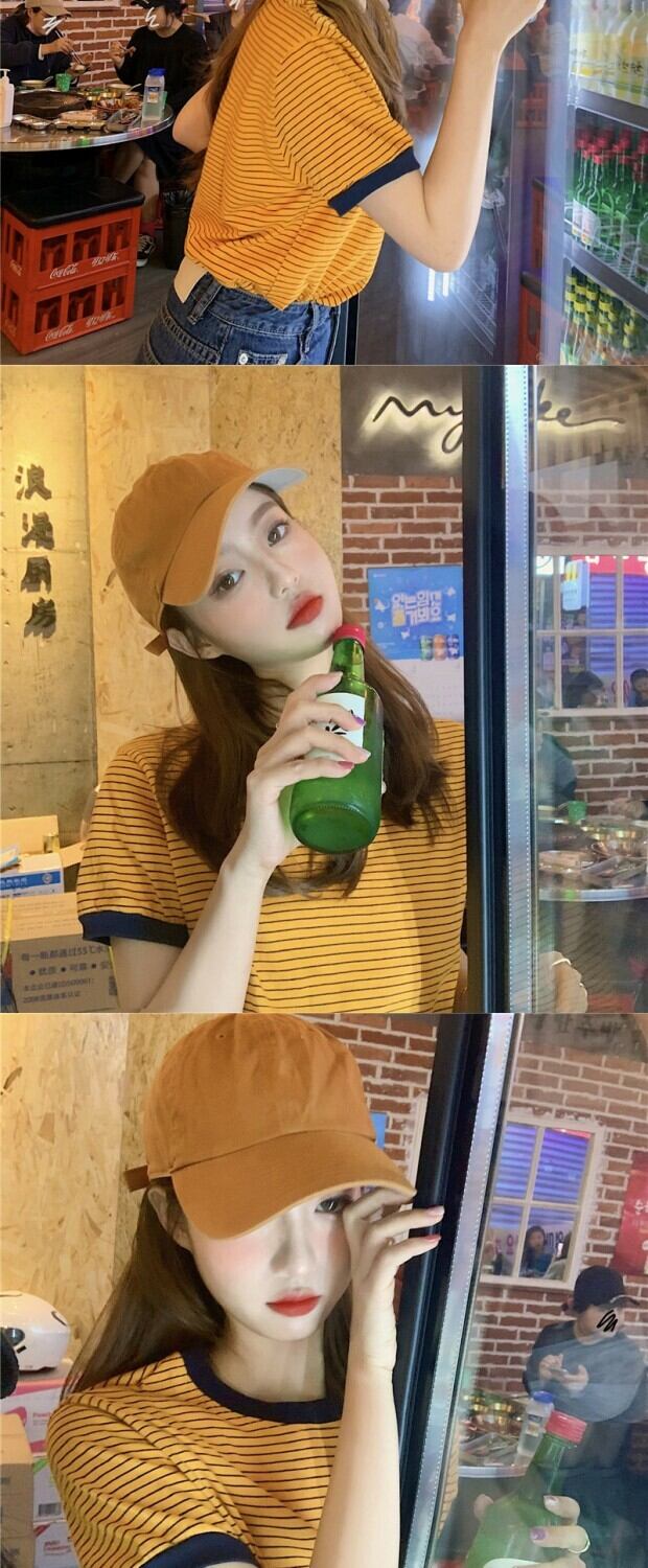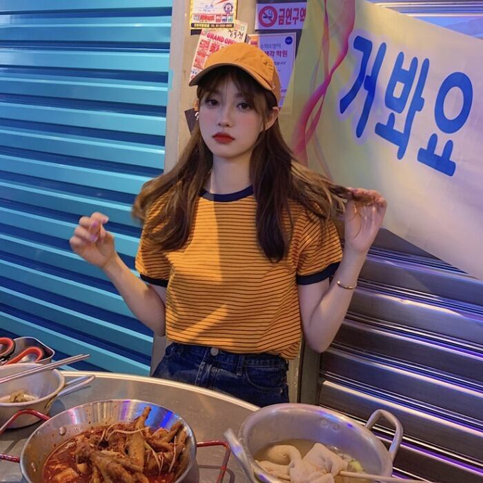 新しいストライプヒットカラートップボトミングシャツ女性のバージョン夏ワイルドショートルーズラウンドネック半袖Tシャツタイド kumikum60722025369