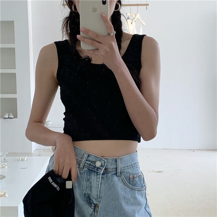 夏にセクシーなノースリーブの短い臍の短いキャミソールの女性を着て、痩身と痩身、インナーウェアのボトミングシャツトップ kumikum50189643135