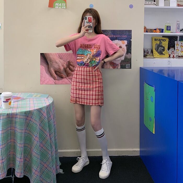 女の子の年齢削減漫画プリントピンクのボトミングシャツ夏のルーズワイルドカジュアル半袖Tシャツトップの女性版 kumikum35339061487