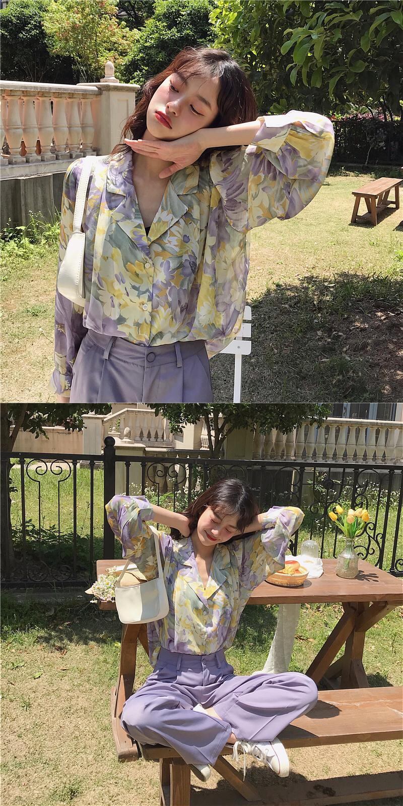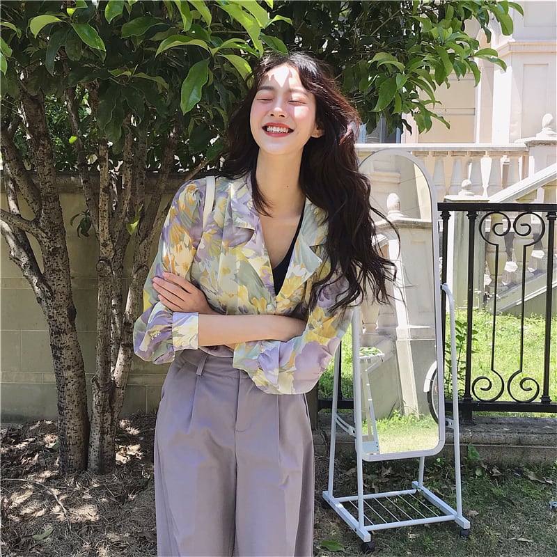レトロプリントニッチ薄日焼け防止服シフォンシャツトップレディースサマールーズ長袖シャツシャツ kumikum16020468942