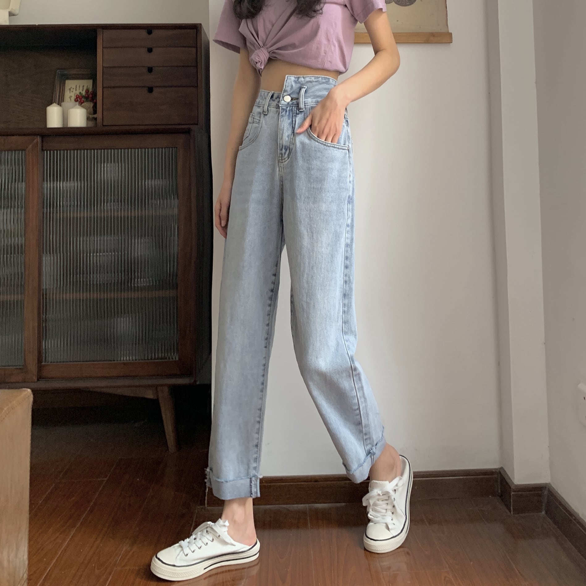ナインポイントパンツレディース秋イレギュラーハイウエストレトロジーンズスリムパンツルーズストレートレッグパンツワイドレッグパンツ kumikum88120600331