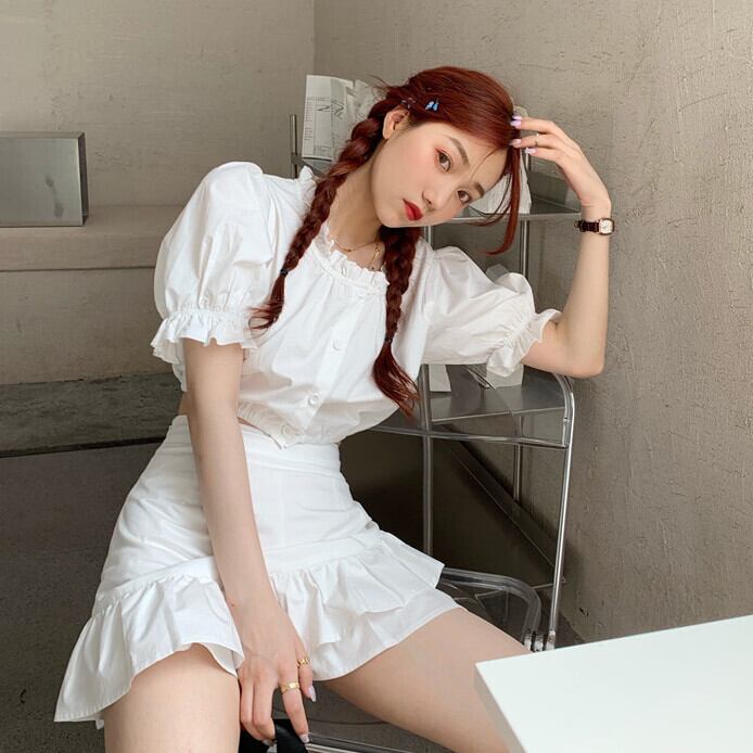 洋風カジュアルツーピース女性夏ショートホワイト半袖シャツトップAラインショートスカートネットレッドファッションスーツ kumikum47945619219