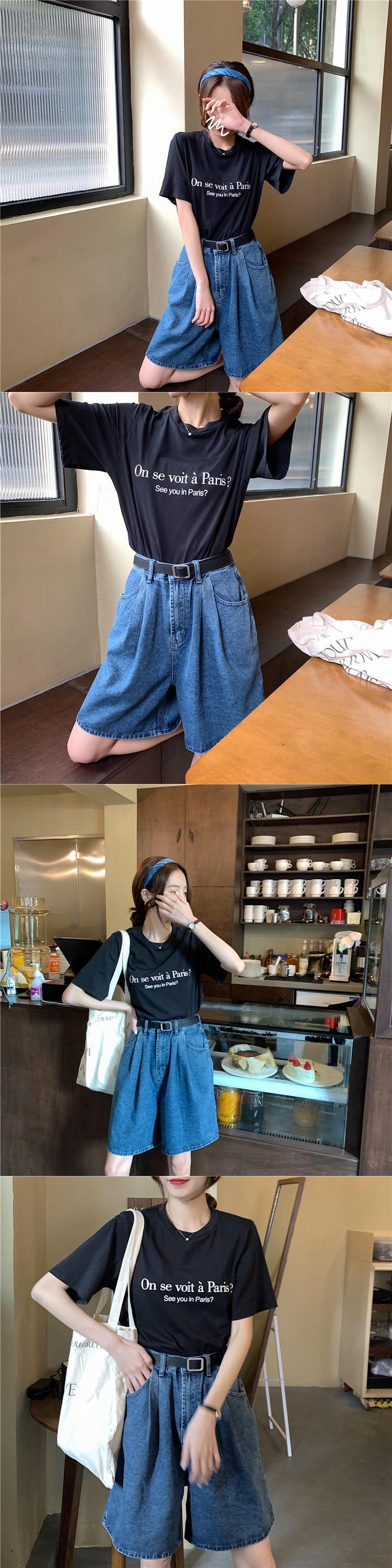 レトロなカールアップ薄手のハイウエストジーンズレディースパンツ夏の学生オールマッチルーズワイドレッグパンツショーツパンツトレンド kumikum95428300700