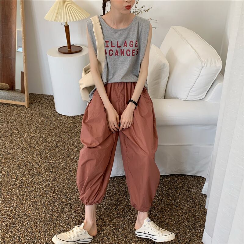 2020年夏新ウエストハイウエストカジュアルパンツレディース9点パンツトレンディな薄手ルーズスポーツパンツブルマパンツ kumikum2012959810