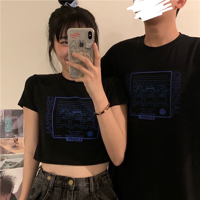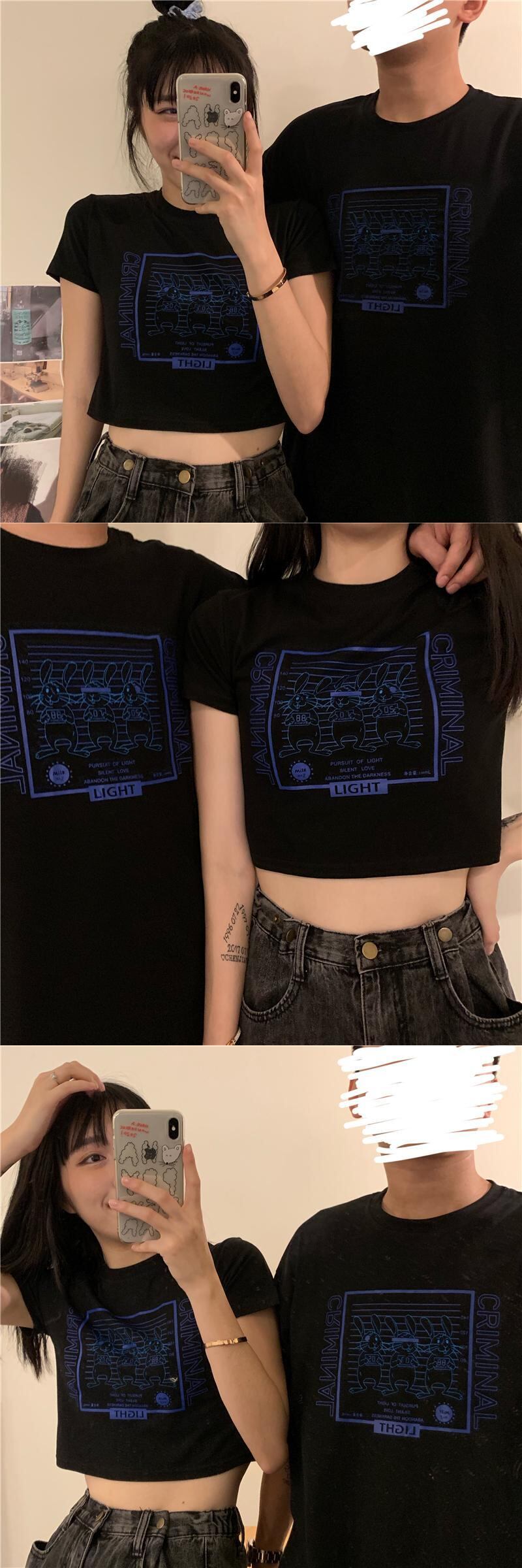 2020年夏のショートカップル半袖レディースボトミングシャツルーズオールマッチブラウス漫画プリント黒Tシャツ kumikum10225406109