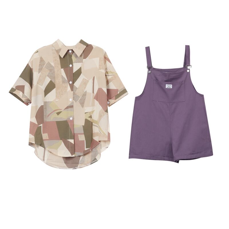 夏の学生年齢削減ビッグポケットパープルビブパンツ女性ルーズハイウエストワイドレッグショーツスリムカジュアルパンツ kumikum50934499084