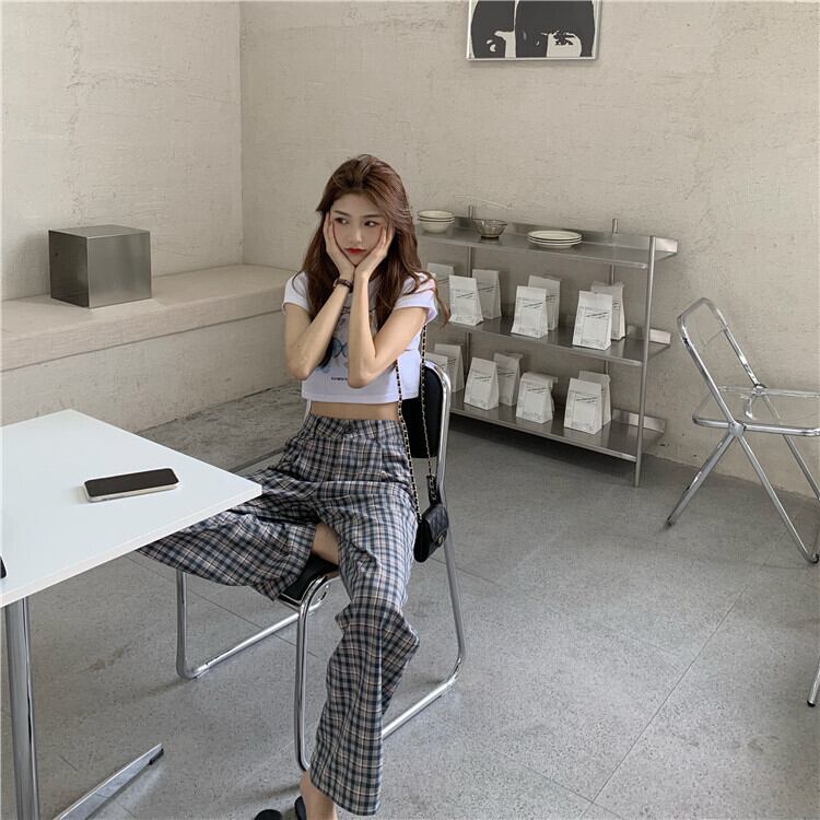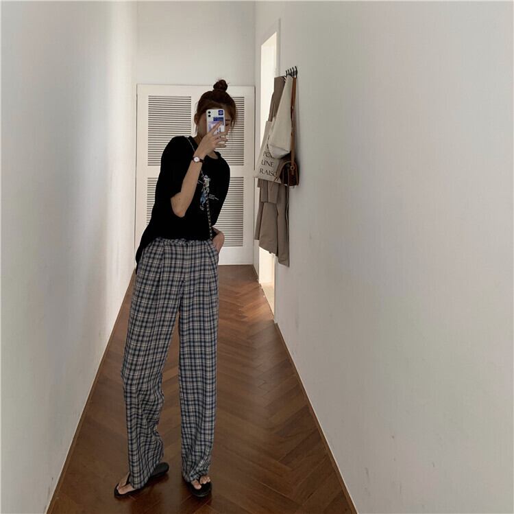 レトロラティスワイドレッグパンツレディース秋香港フレーブルカジュアルパンツシンパンツハイウエストストレートレッグパンツモップパンツ kumikum40201937767