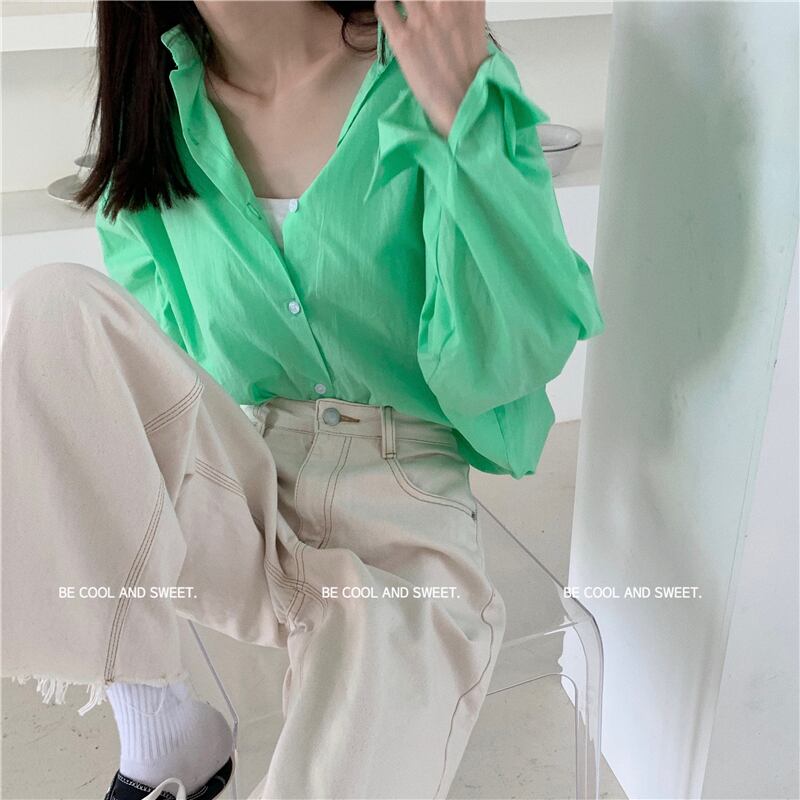 オールマッチ無地日焼け止めトップスシャツ女性秋レトロルーズ薄薄長袖薄シャツジャケット kumikum77781828656