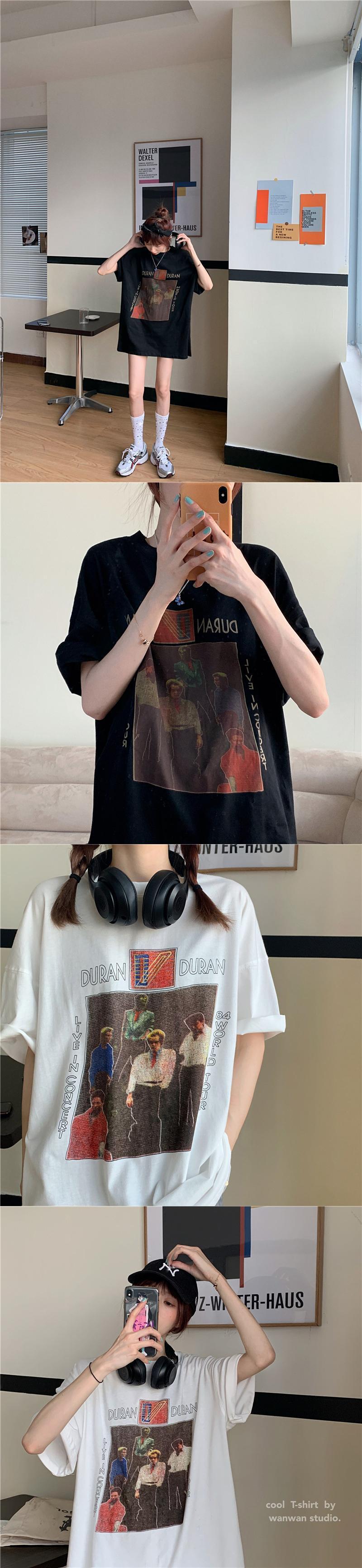 ルーズホワイトシャツ レディースサマープリントTシャツ レッドトップス 夏物 kumikum96187143180