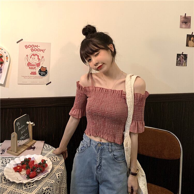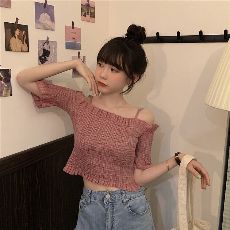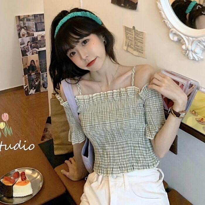 薄手ストラップレスシャツ サマースタンダード格子柄 レトロ 夏物 kumikum49608413925