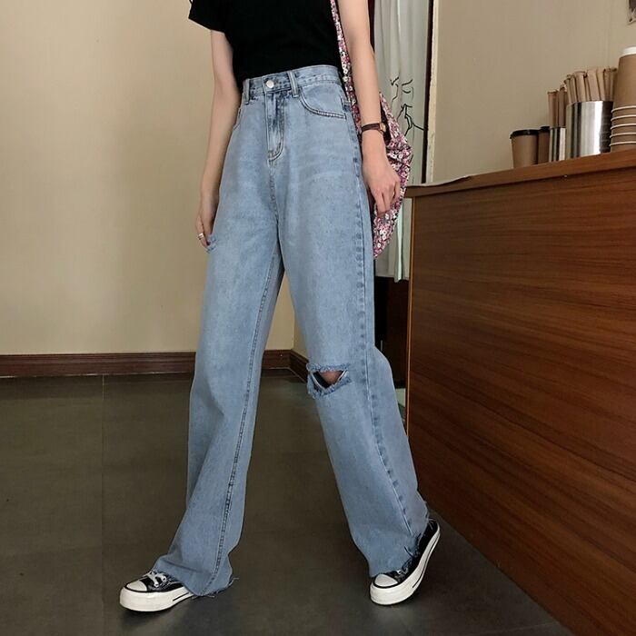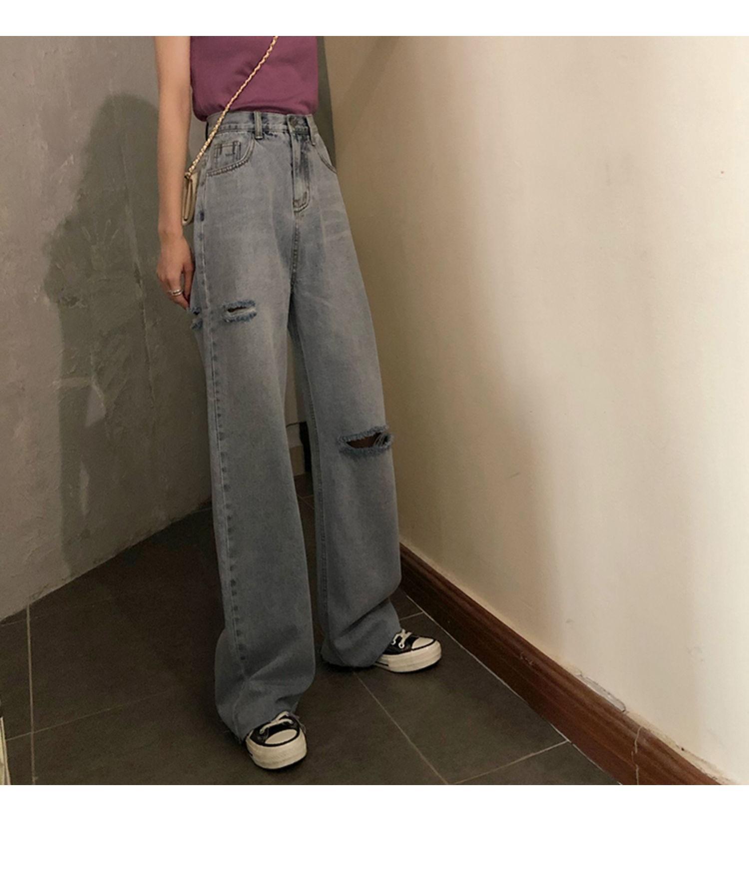 ハイウェストウェストジーンズ レディース薄手ワイドレッグパンツ ルーズ ワイドパンツ kumikum65377267091