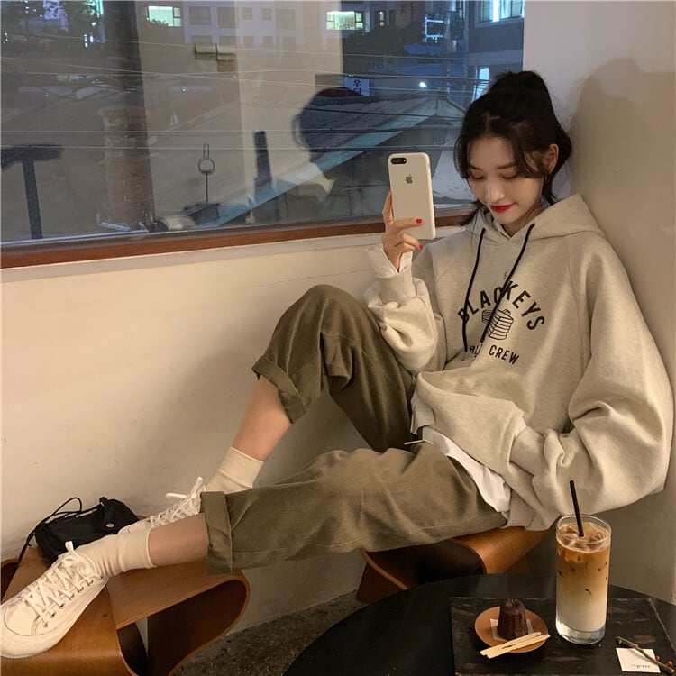 フードセーター レディースオータムプリントルーズプルオーバー ジャケット ロング 秋物 kumikum85977284932