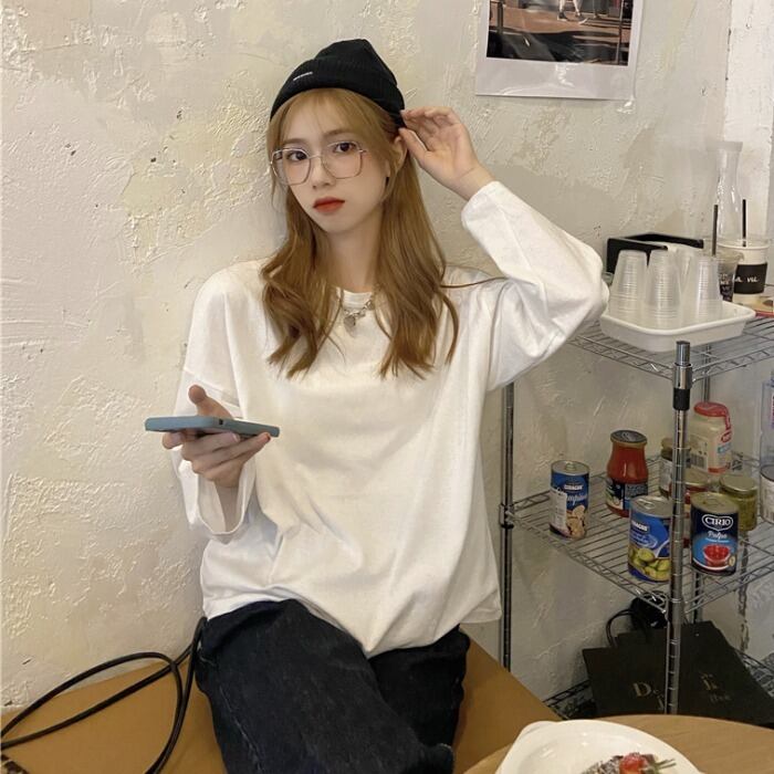 ベーシックルーズシャツ トップス オータム薄手Tシャツ ロング 秋物 kumikum89792924885