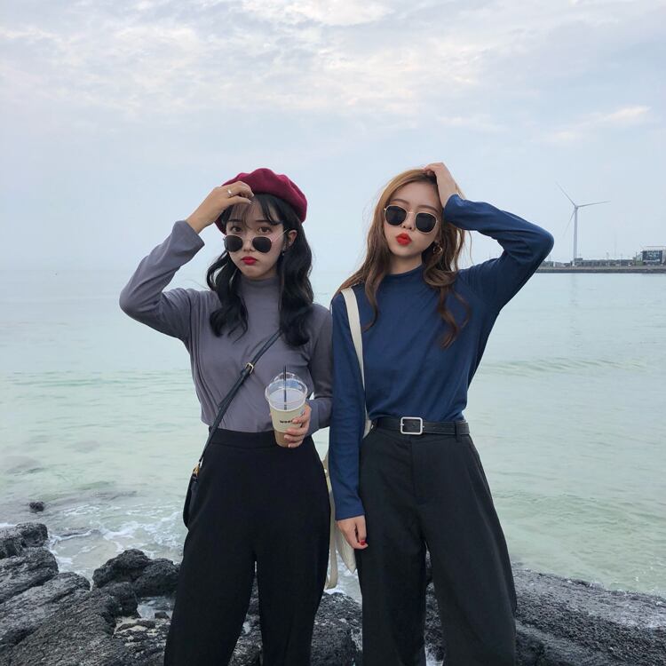 スリム長袖スリーブTシャツ シャツ スプリングソリッド カラートップス ロング 春物 ソリッドカラー kumikum73038323125