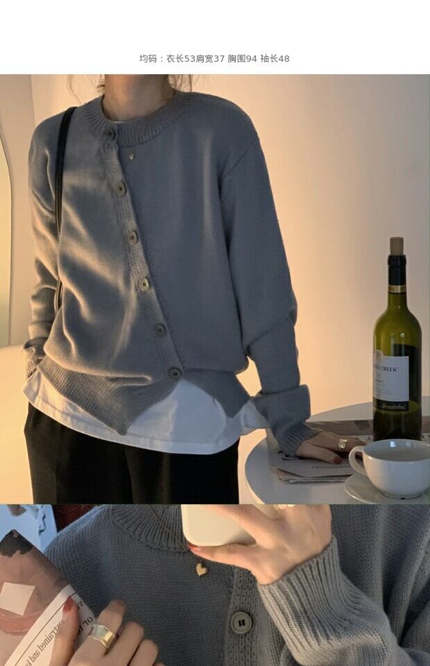スプリングカラーセーター コート ラウンドネックバックルニットカーディガントップス 春物 Oネック ピュア kumikum85903090407