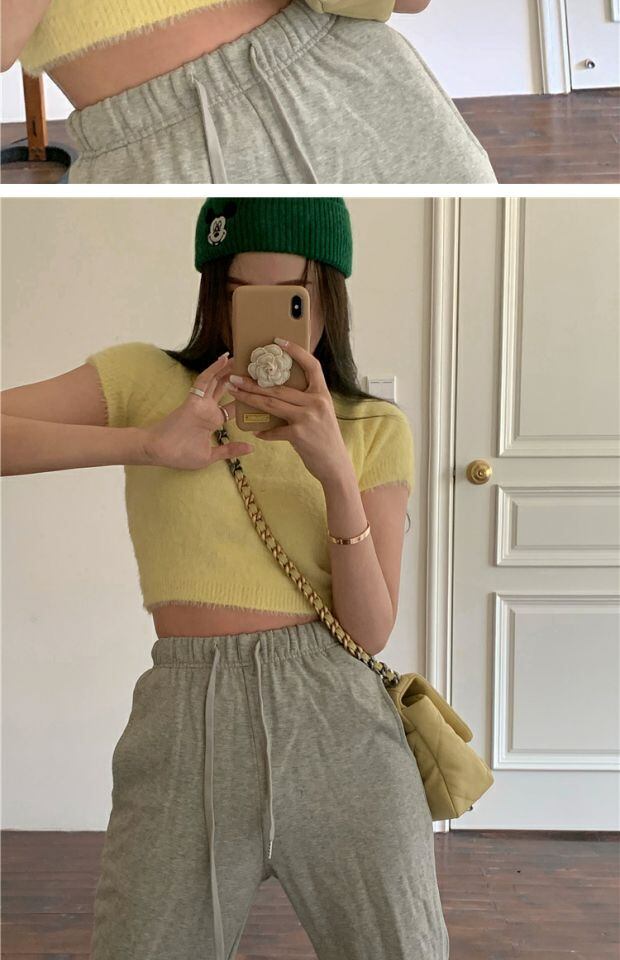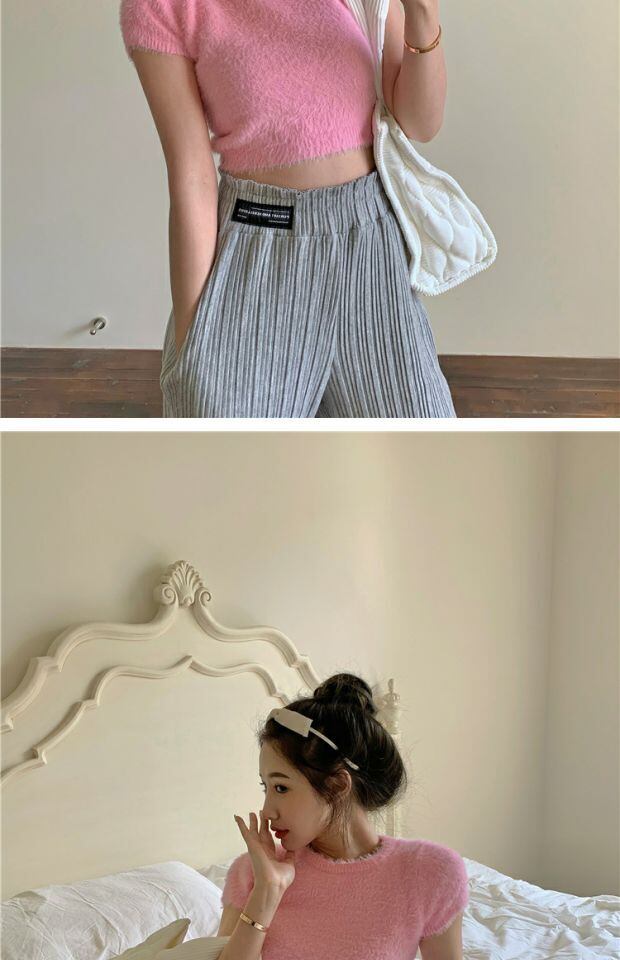 ソリッド カラーショートセーター スプリング薄手ラウンドネックニットトップス 春物 Oネック ソリッドカラー kumikum37061843634