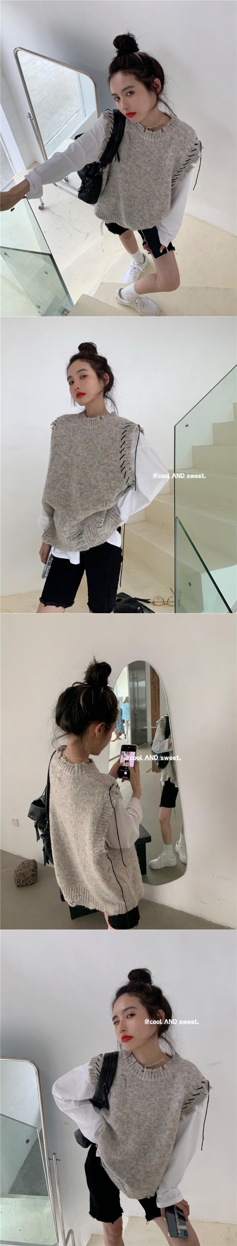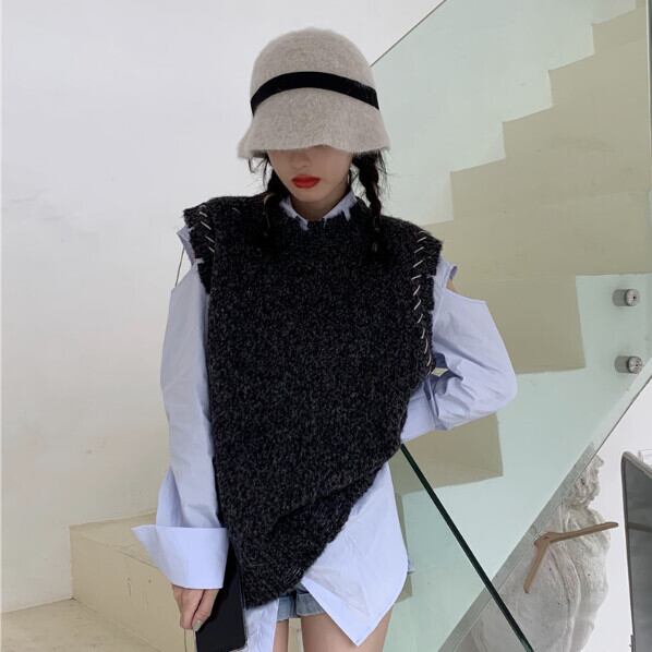 カラーニットレディーススプリングルーズノースリーブセーター 春物 kumikum1039782677