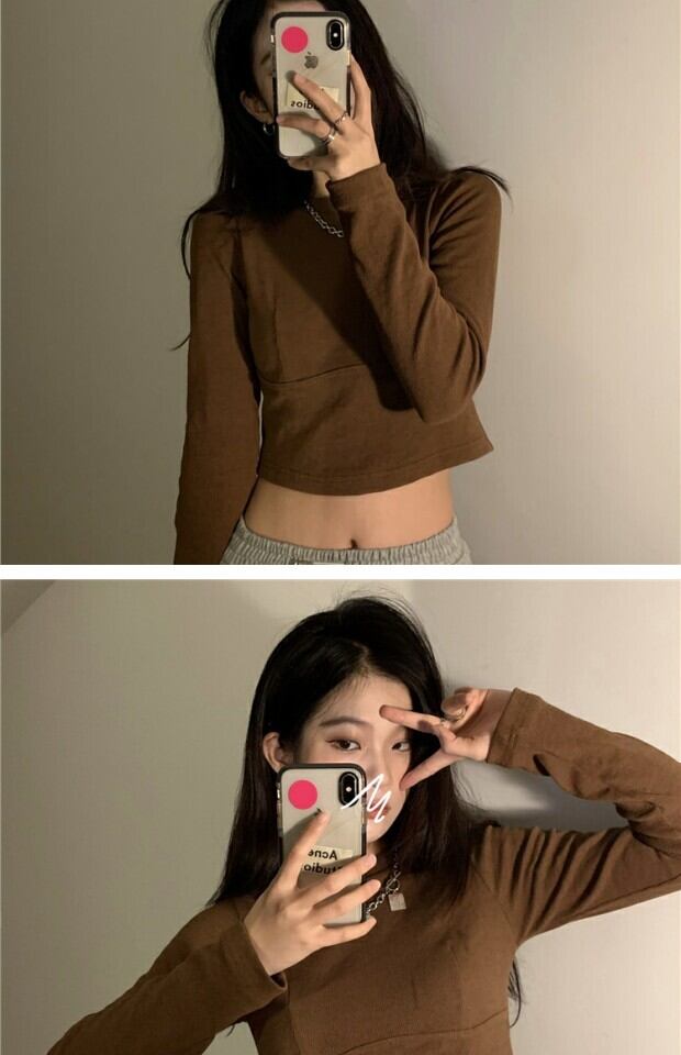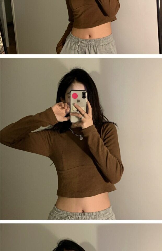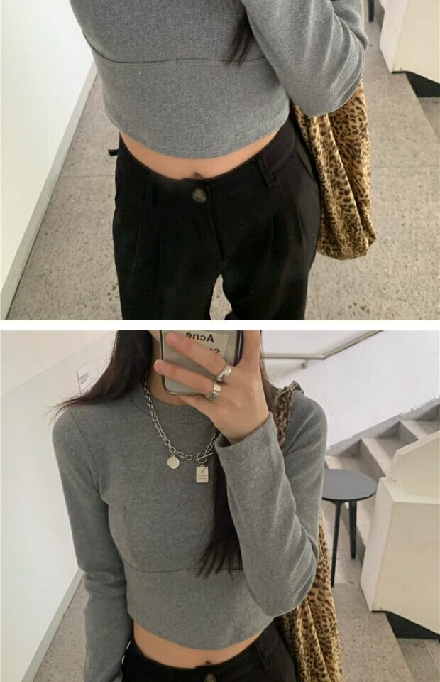スプリングベーシックショートスリムソリッド カラートップス ロング 春物 ソリッドカラー kumikum15557602681