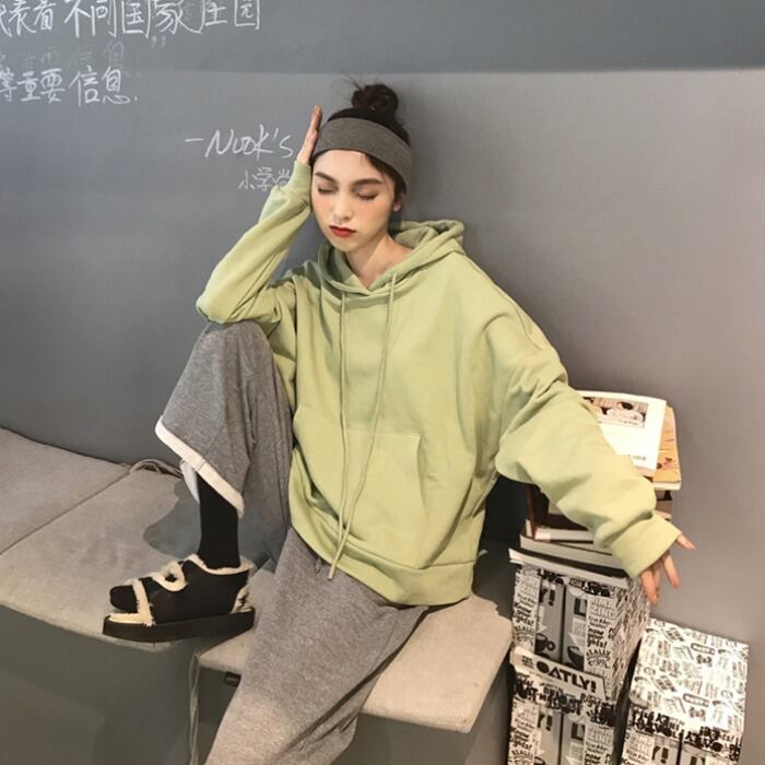 スプリングルーズフード長袖スリーブセーター ウェストパンツ ロング 春物 kumikum68638388535