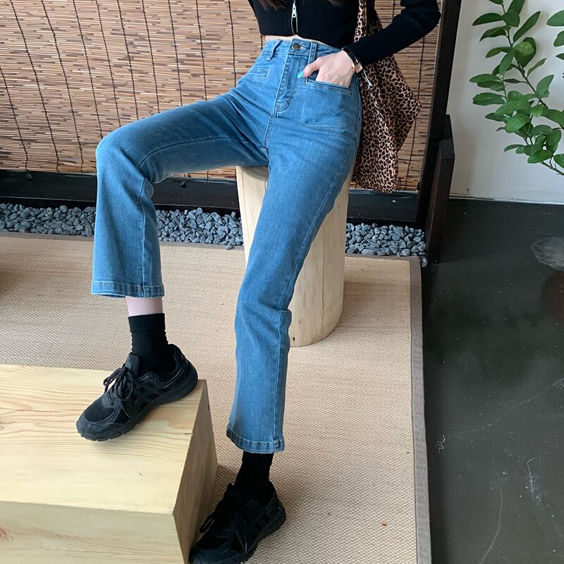 ジーンズ オータムスリムハイウェストパンツ 薄手 レッド 秋物 kumikum36570226243