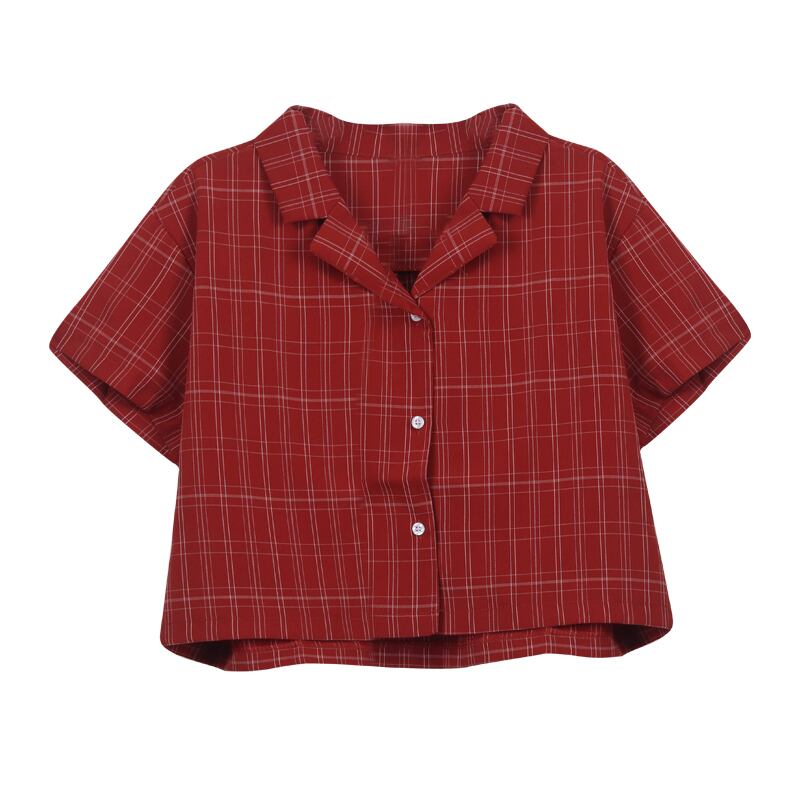 スタンダード格子柄ショートトップス シャツ サマールーズジャケット レトロ 夏物 kumikum43461574000