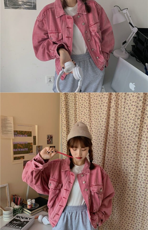 スタンダードジャケット スプリングルーズショート レッド レトロ 刺繍 春物 kumikum46020217149