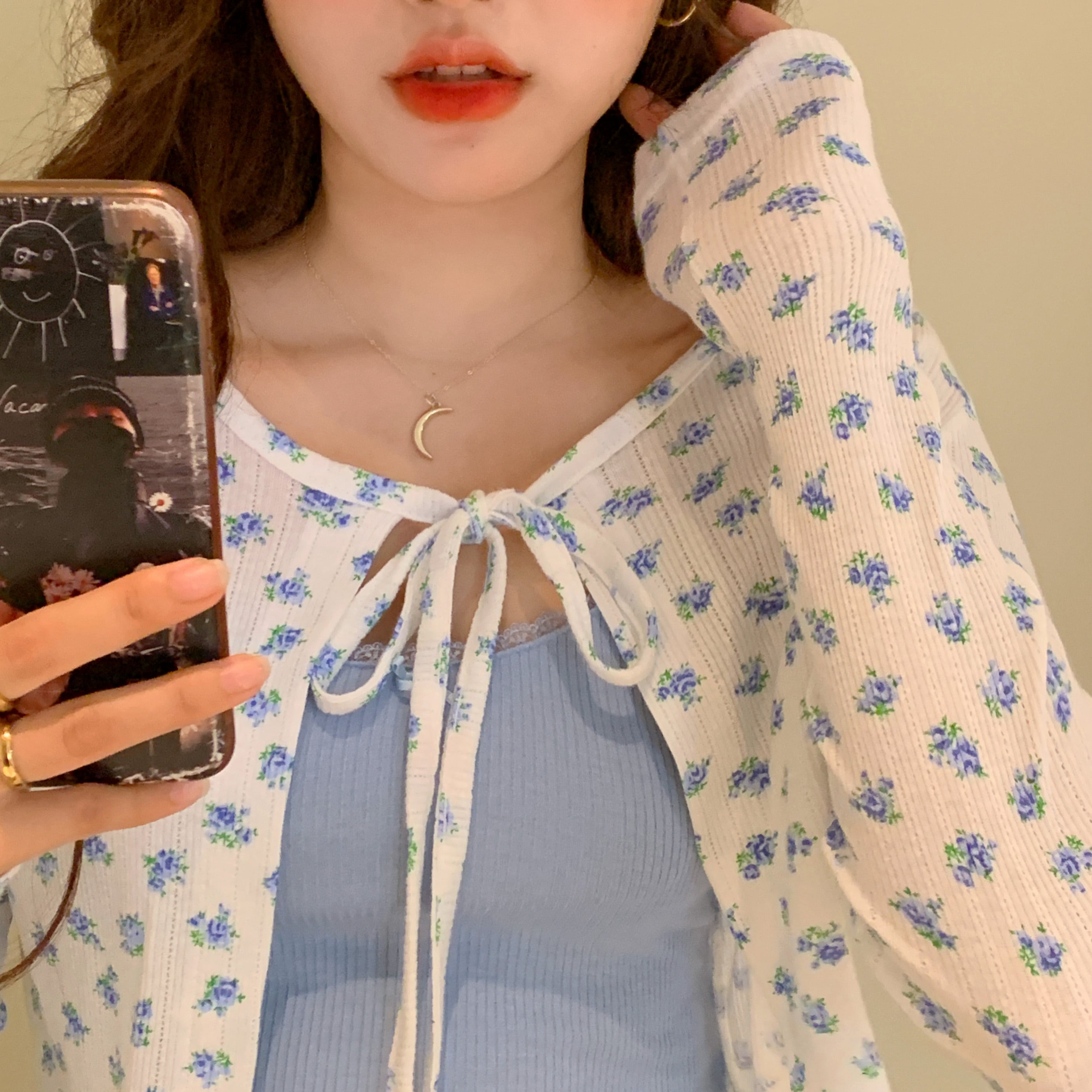 ショートスタンダードフローラルニットセーター トップス レディースサマー薄手カーディガンジャケット ロング レトロ 夏物 花柄 kumikum24253930204