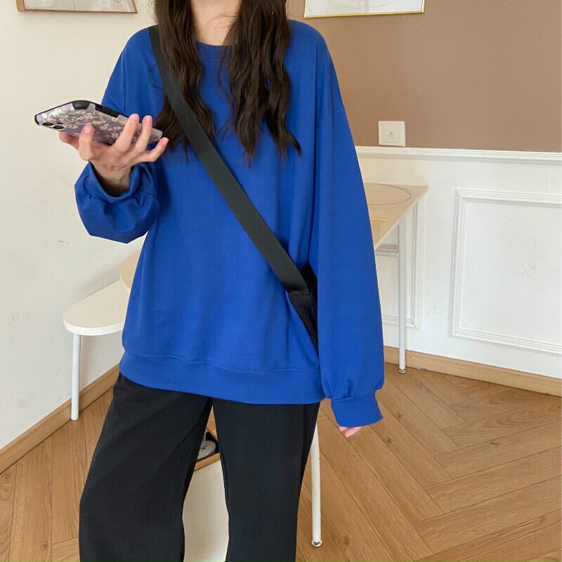 ルーズ長袖スリーブラウンドネックイエロースウェット シャツ ジャケット オータムトップス ロング 秋物 Oネック kumikum79321509494