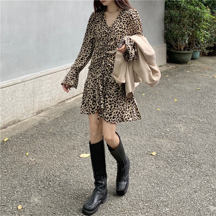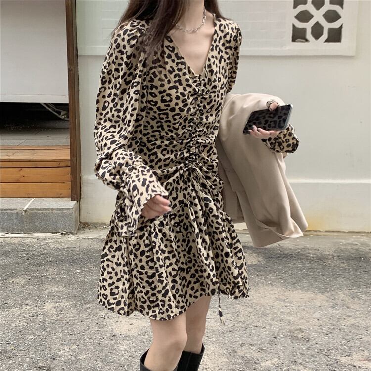 オータムカジュアルジャケット レオパードプリント柄スカート ロング 秋物 kumikum88113108924