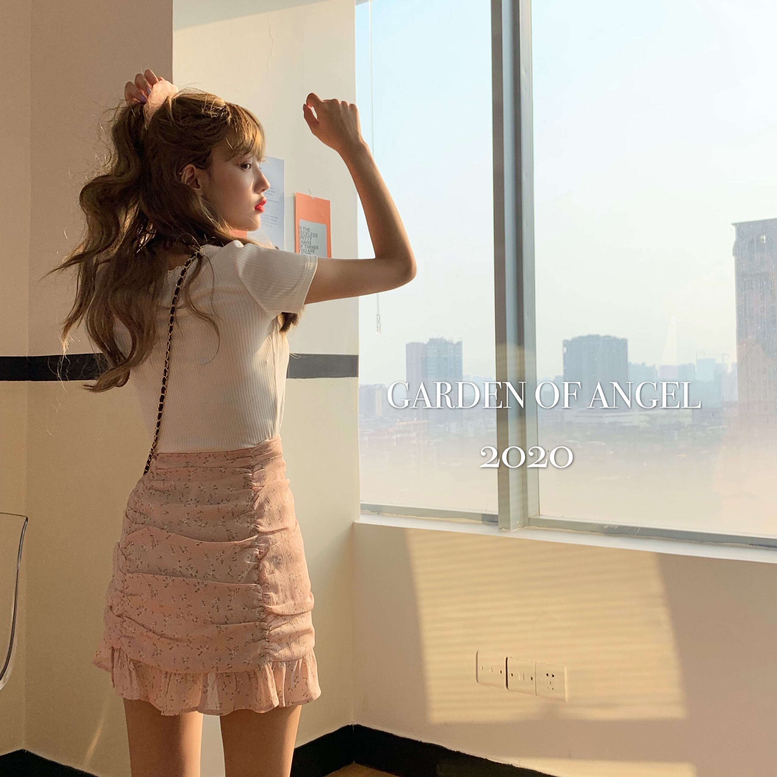 プリーツスタンダードフローラルハイウェストウェストスカート サマー薄手Aライン レトロ 夏物 花柄 kumikum73878833974