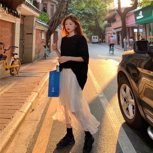 メッシュスタンダードスカート サマーホワイトハイウェストウェストスリムロング レトロ 夏物 kumikum35727105030
