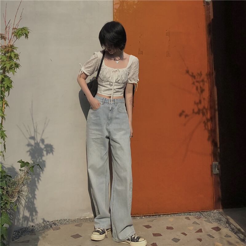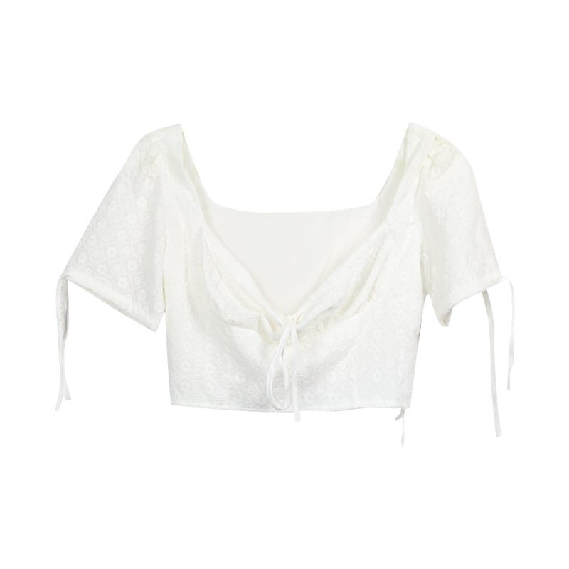 スタンダードカラー薄手シャツ ショートトップス レディースサマースリムホワイト レトロ 夏物 スクウェア kumikum2000197499