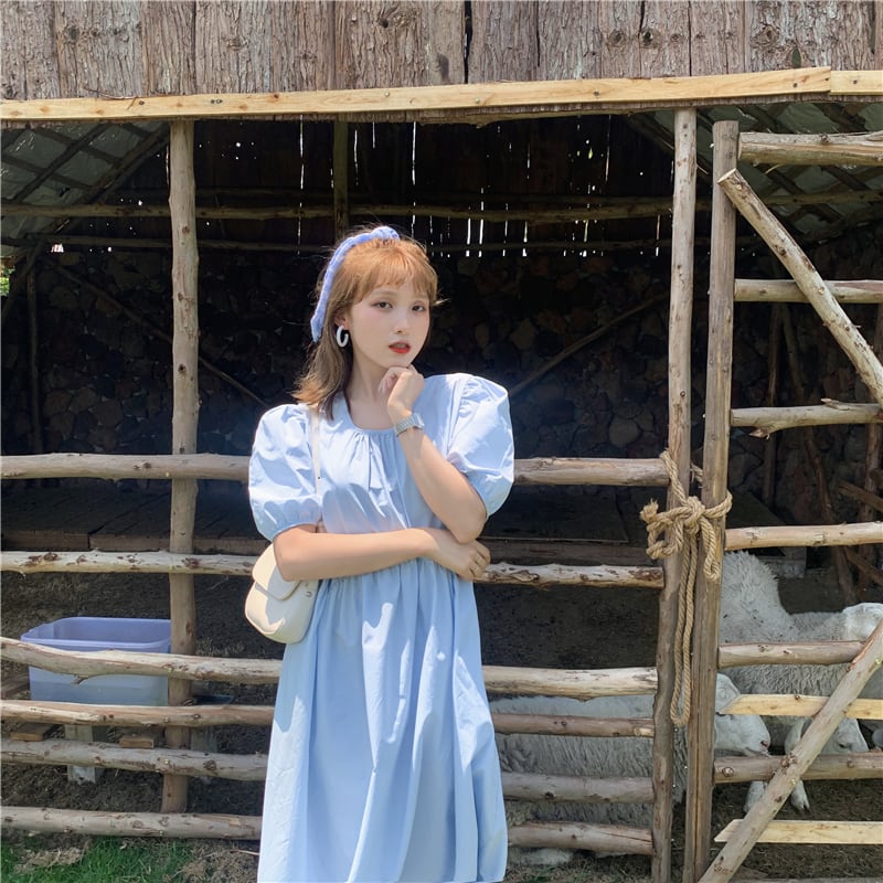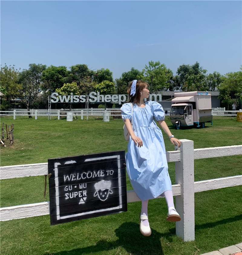 ブルースリーブウェストドレス スカート サマールーズロング 夏物 スクウェア kumikum11924900590