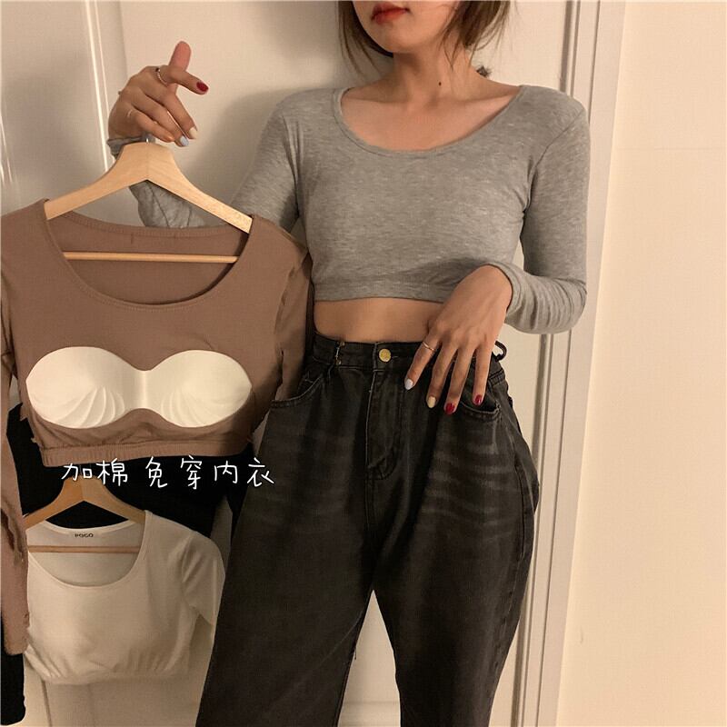 ラウンドネックシャツ スプリングスリムショートTシャツ トップス 春物 Oネック kumikum80997726706