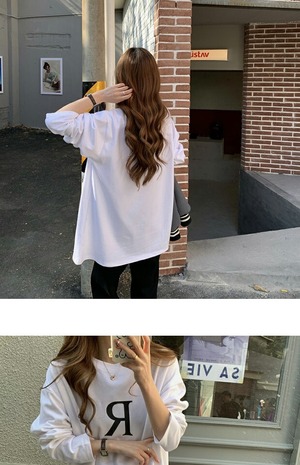 スプリングプリントルーズシャツ Tシャツ 薄手スタイル ロング 春物 kumikum95690218004