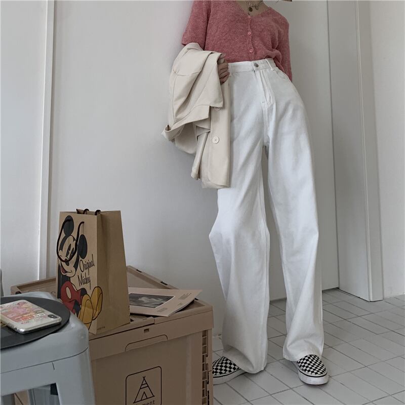 ホワイトジーンズ パンツ スタイルオータムウィンターハイウェストルーズカジュアル 秋物 冬物 kumikum49729210537