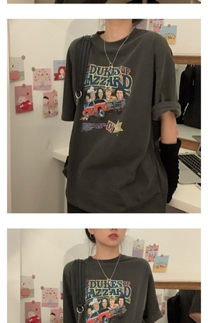 スタンダードプリントTシャツ シャツ トップス サマールーズ レトロ 夏物 kumikum5838540586