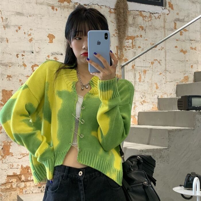 スタイルショートカーディガンセーター スプリングルーズトップス ニットコート ロング 春物 kumikum20309729303