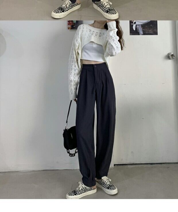 パンツ スプリングハイウェストウェストサイドブラックルーズワイドレッグロング 春物 ワイドパンツ kumikum12566006337