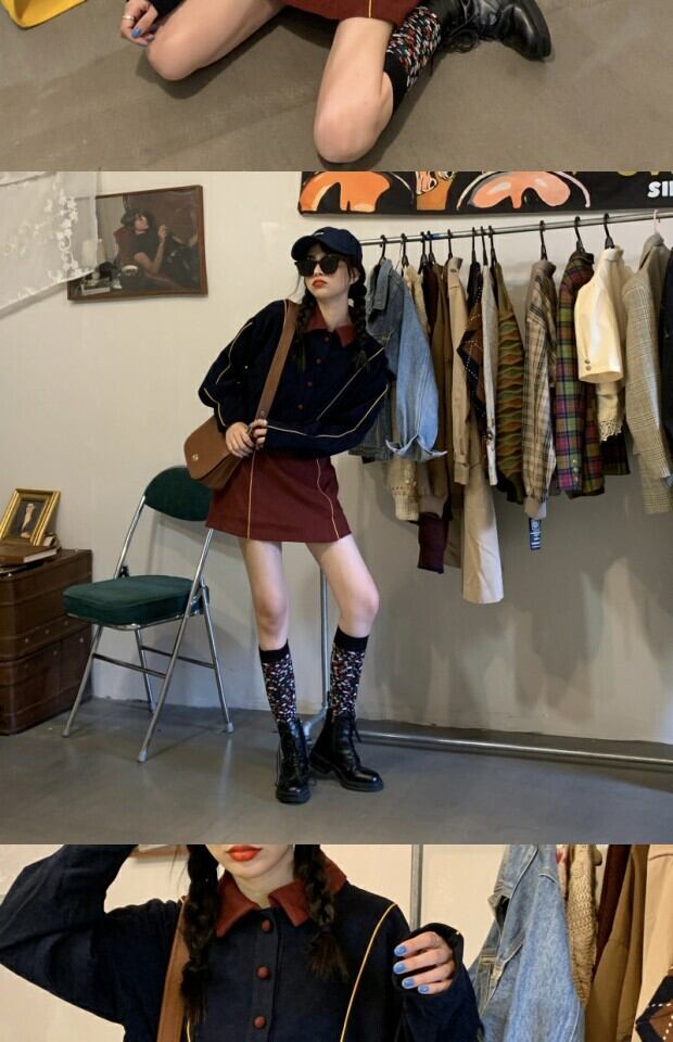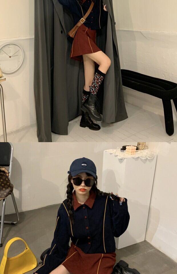 色:ダークブルーコート,クラレットスカート