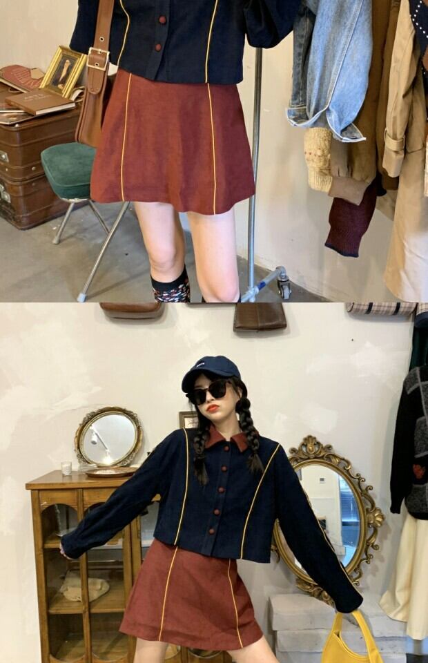 ショートジャケット スプリングハイウェストウェストスカート 春物 kumikum93678527410
