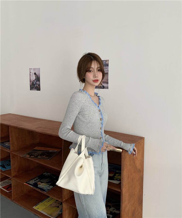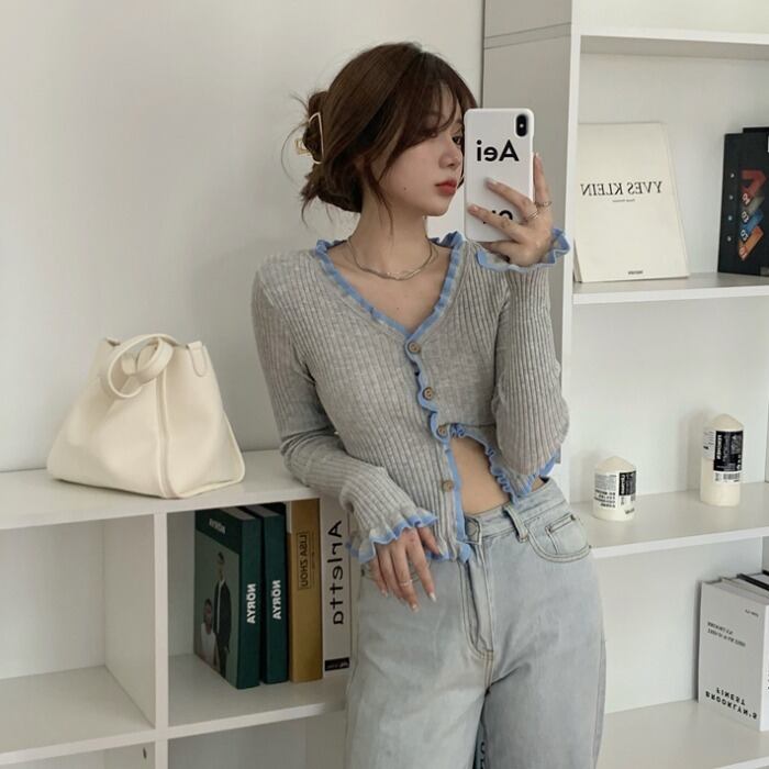 カラーニットセーター スタイルショートカーディガンレディースオータムVネックトップス ロング 秋物 kumikum21914127390
