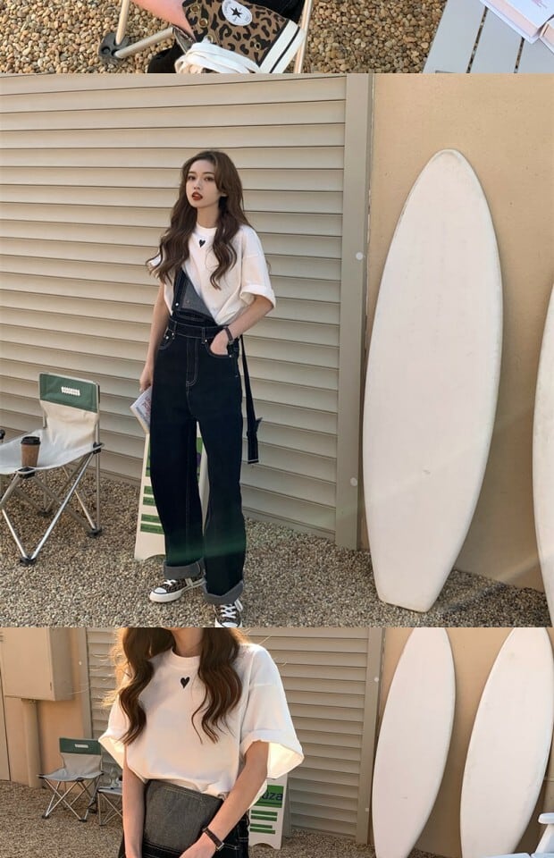 カラーラウンドネックシャツ Tシャツ サマールーズカジュアルトップス 夏物 Oネック kumikum88817563356