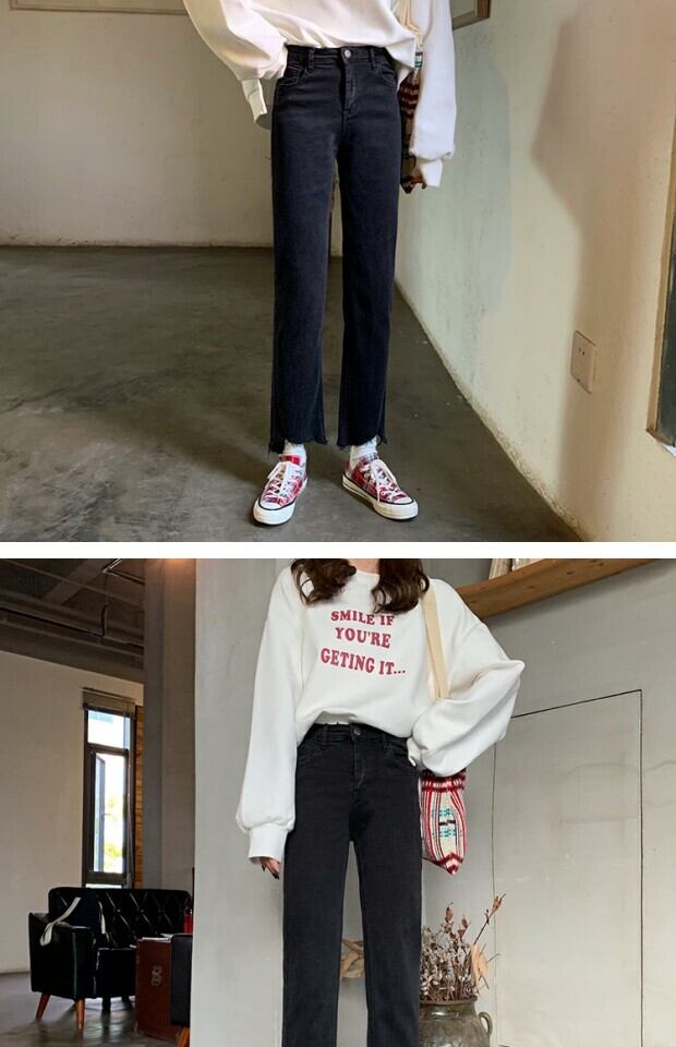 ウェストブラックジーンズ スプリングパンツ ルーズカジュアル 春物 kumikum63887576404